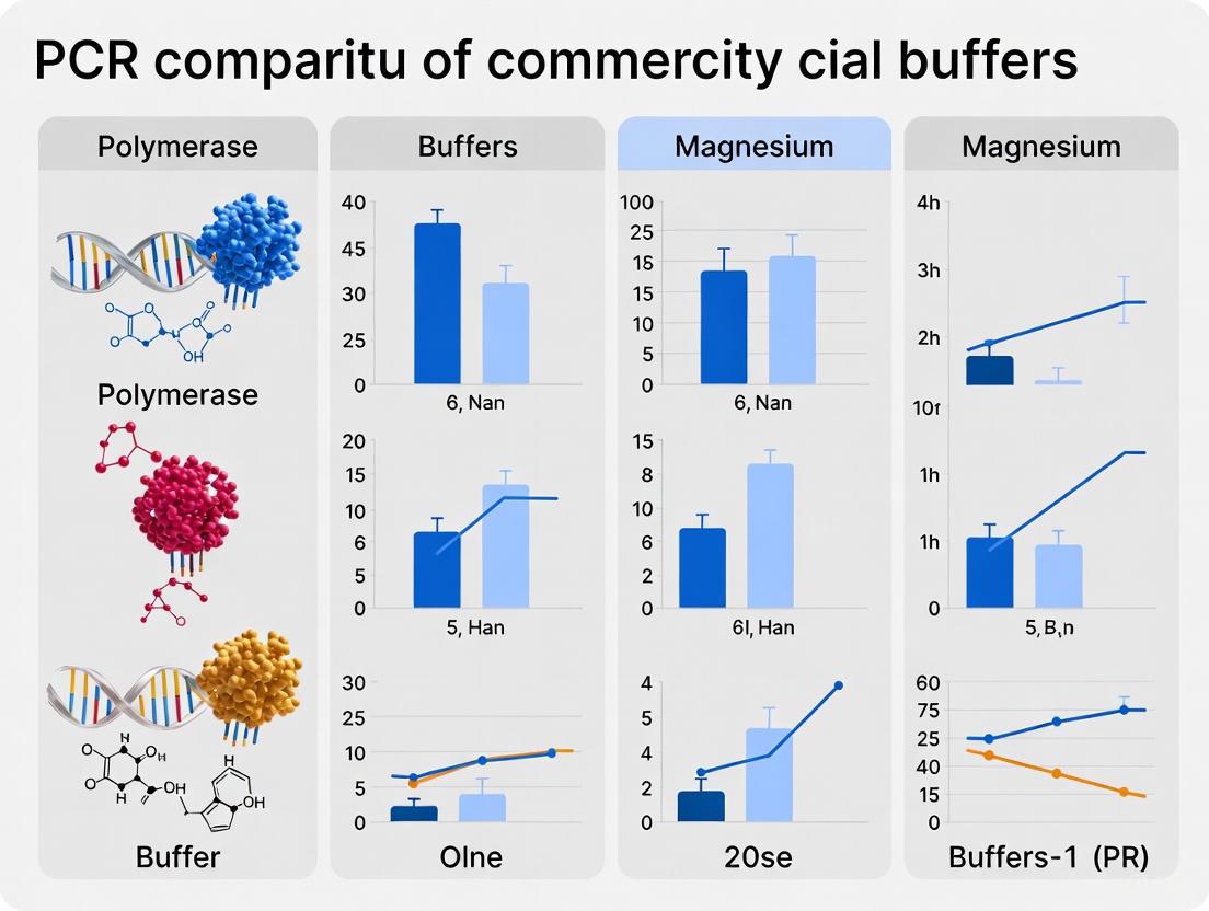 This article provides a systematic analysis of how commercial PCR buffers and magnesium chloride (MgCl2) concentration jointly influence polymerase chain reaction efficiency, specificity, and yield. Tailored for researchers and drug development professionals, we synthesize foundational principles with applied methodologies, offering evidence-based guidelines for buffer selection and magnesium optimization across diverse template types, including challenging GC-rich targets. The content explores troubleshooting common amplification failures, presents validation strategies for protocol comparison, and delivers a practical framework for selecting optimal reaction conditions to enhance reproducibility and success in genetic analysis, diagnostic testing, and clinical research.