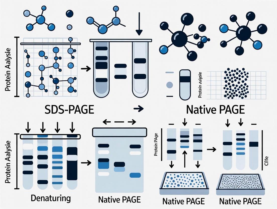 SDS-PAGE and Native PAGE operate on different separation principles that inherently dictate their suitability for downstream applications. Understanding these core mechanisms is essential for selecting the appropriate method for specific research goals.